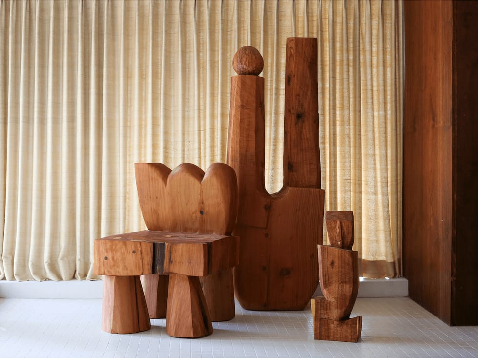 Spring brings more time outdoors surrounded by grass, flowers, and (of course) trees. It’s inevitable that wood furniture is back in a big way, then, often in chunky, sculptural silhouettes rather than sinuous, upholstered ones. This more au naturale look puts wood grain and texture on full display, like in designer Vince Skelly’s new work, a series of redwood pieces shown at the Claremont Lewis Museum of Art through April 23. It’s a look that, naturally, can transition from indoors to outdoors with ease: Skagerak’s just-launched Plank collection places large slats of teak wood front and center, and De La Espada’s 98.6°F line takes a similarly stripped-back approach with its straightforward European oak designs.