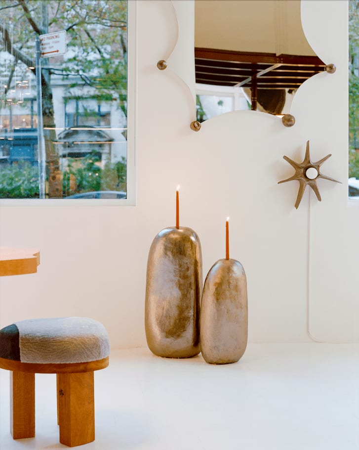 This year’s status candles are basically furniture. Let’s be clear—you can’t recline on them (and please don’t try that at home), but candleholders are quickly taking over as the new home statement piece. No longer just an elegant, pewter object for the tabletop, these objects are now furnishings in their own right. Recent examples include Eny Lee Parker’s rounded Peb at Verso Works and Roxanne Jackson’s bonkers, six-foot-tall Tropical Goth candleholder at Room57 Gallery. Often candles are even built into larger furnishings, like Ellen Pong’s Peaks and Valleys cocktail table from her Superhouse show, and William Guillon’s Beautiful People mirror at Objective Gallery. Now all that’s left is an equally stylish candle to pair these with.
